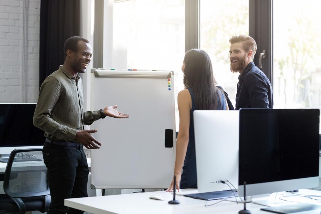 Kurze Demos, Lightning Talks und Retro-Runden halten Wissen lebendig. Erfolge werden sichtbar, Stolpersteine benannt. Diese Rituale schaffen psychologische Sicherheit und fördern mutige, konstruktive Prozessverbesserungen.